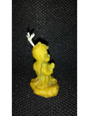 Handmade natural beeswax candle shaped like a whimsical rabbit wearing a hat and carrying a sack,...
