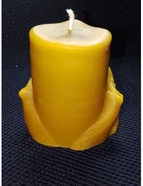 Handmade natural beeswax candle in the shape of a creatively twisted cube, crafted by Goldendrops...