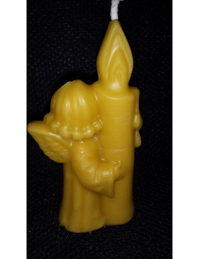 Handmade natural beeswax candle with angel wings and a flower on the front. Unique, symbolic, and...