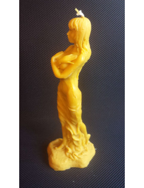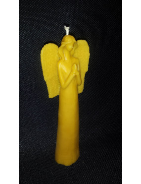 Handmade natural beeswax candle with angel wings and a flower on the front. Unique, symbolic, and...